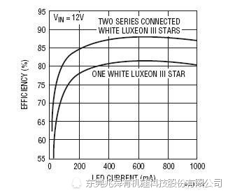图2 LT3474降压型转换器能够高效地驱动单个或多个LED